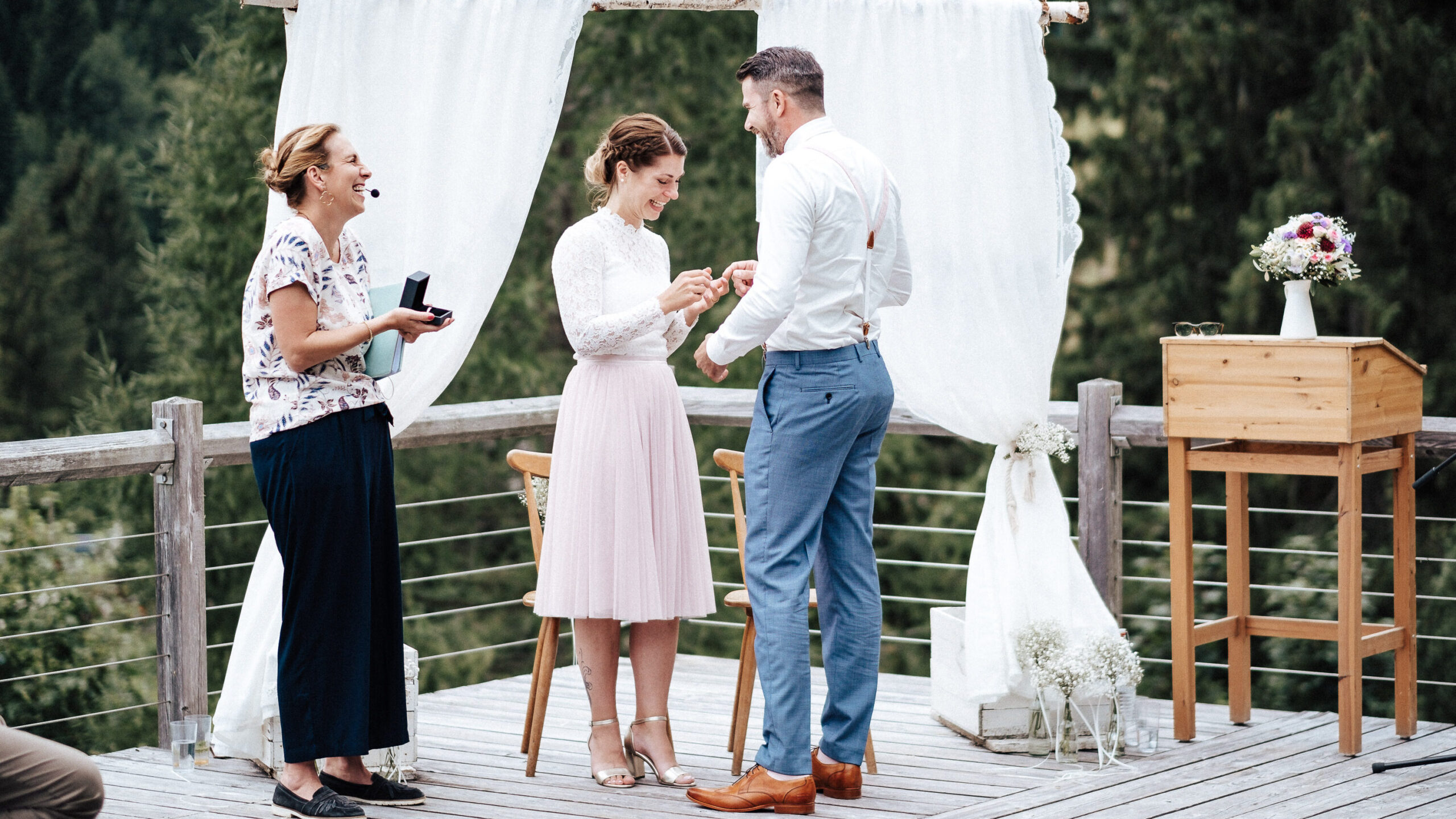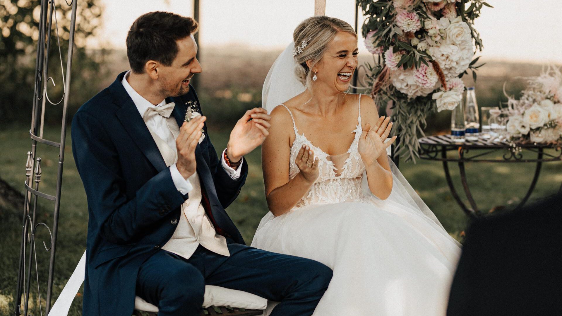 Wir sind so so froh, dass du unsere Trauung zu so einer Besonderen gemacht hast und danken dir von ganzem Herzen für die kleinen Stubser, die uns unvergessliche Momente gezaubert haben!„